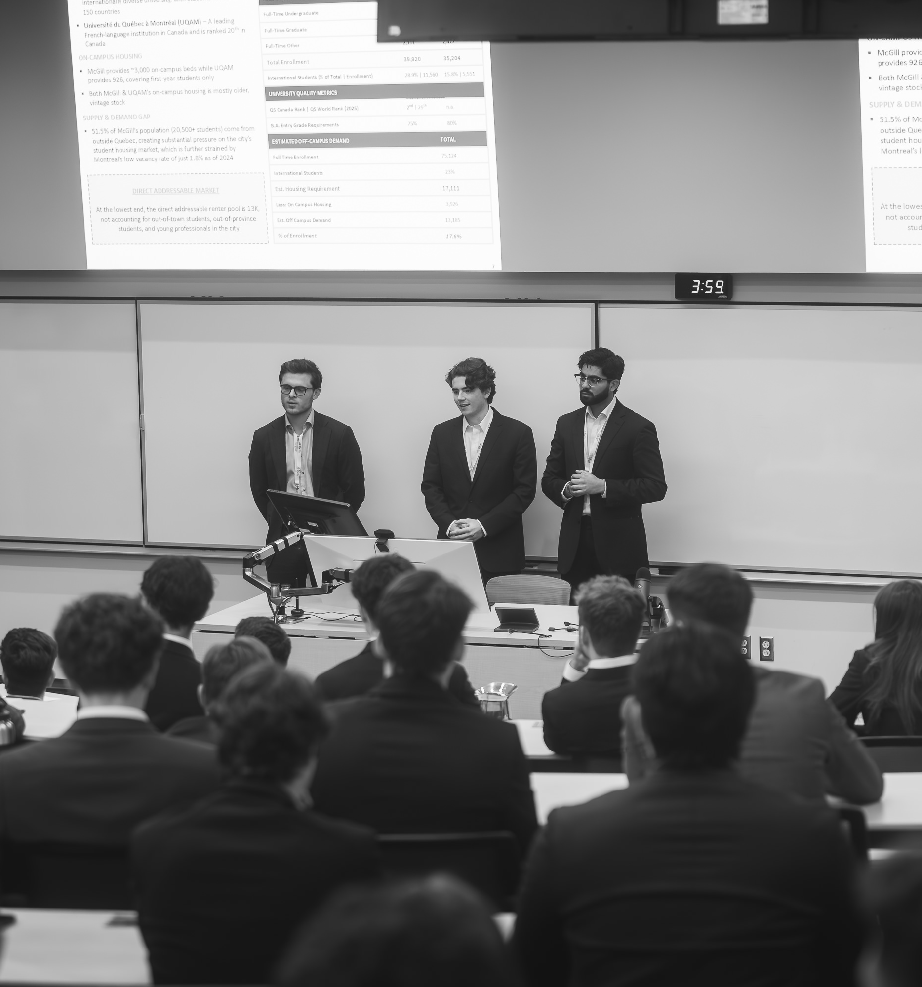 In the winter semester, analyst will represent Concordia at two real estate case competition across Canada. All travel and competition expenses are covered by REIMI. Analysts retain any competition winnings, with the collective prize pool exceeding $30,000.